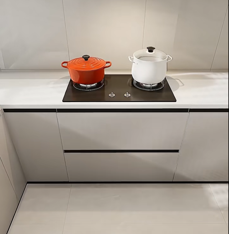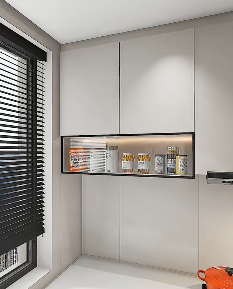 تقصير طول الخزانة المعلقة على اليسار، وإضافة سلة قابلة للسحب (للوجبات الخفيفة والمعكرونة الفورية المستخدمة بشكل متكرر) أدناه، وعمل خزانة قابلة للرفع (لأدوات المائدة الاحتياطية) أعلاه. تكون السلة القابلة للسحب في متناول اليد، ولا تصيب الخزانة القابلة للرفع رأسك عند فتحها. يمكنك أخذ الأشياء دون "الانحناء" طوال العملية، مما يجعل الطهي أسهل.