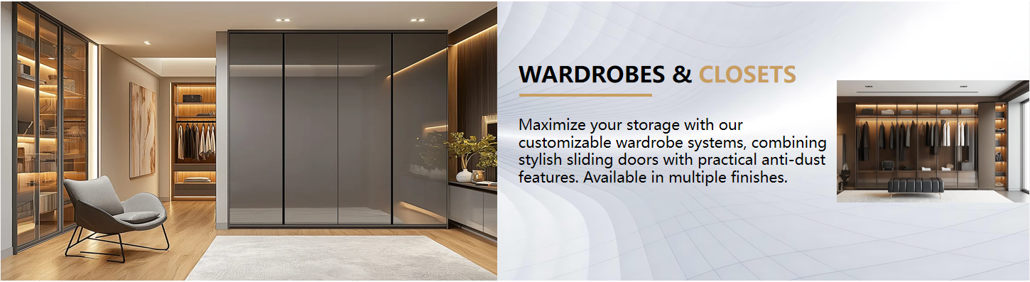 خزانة ممشى عصرية بواجهة زجاجية وإطار من الألومنيوم