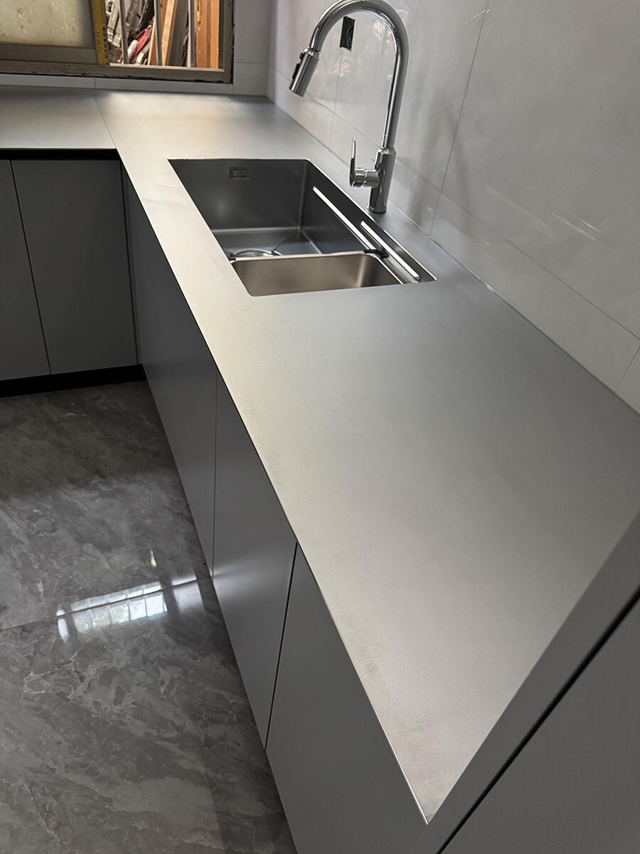 ব্রাশড স্টেইনলেস স্টিল | অঙ্গুলি-চিহ্ন প্রতিরোধী, কম রক্ষণাবেক্ষণ | EN 10088-2 | আধুনিক মিনিমালিস্ট রান্নাঘর |