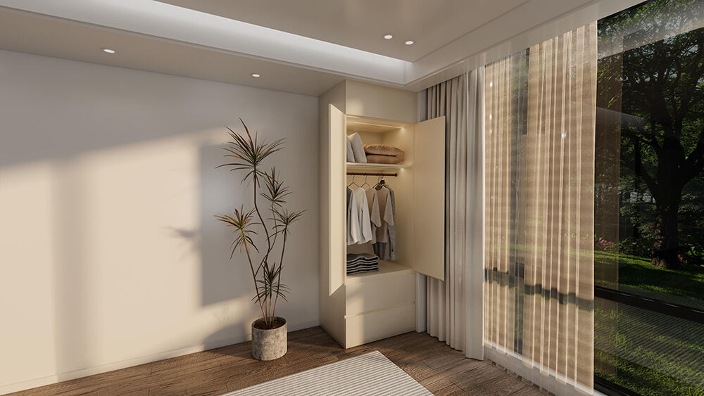 With 13 years of export experience, our in-house designers and dedicated craftsmen shape every wardrobe. We blend modern minimalist aesthetics with functional design, using light-tone panels, dark accents, and glass inserts to reduce visual bulk. Our focus: creating airy, clutter-free bedrooms tailored to urban living needs.