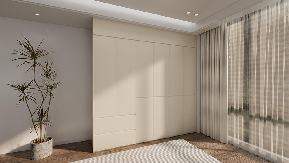 Custom-measured for squares, corners, or odd spaces. Floor-to-ceiling builds maximize vertical storage; wall-hugging designs eliminate dust traps. Glass-solid panel mixes adapt to windows/beds—small spaces feel open.