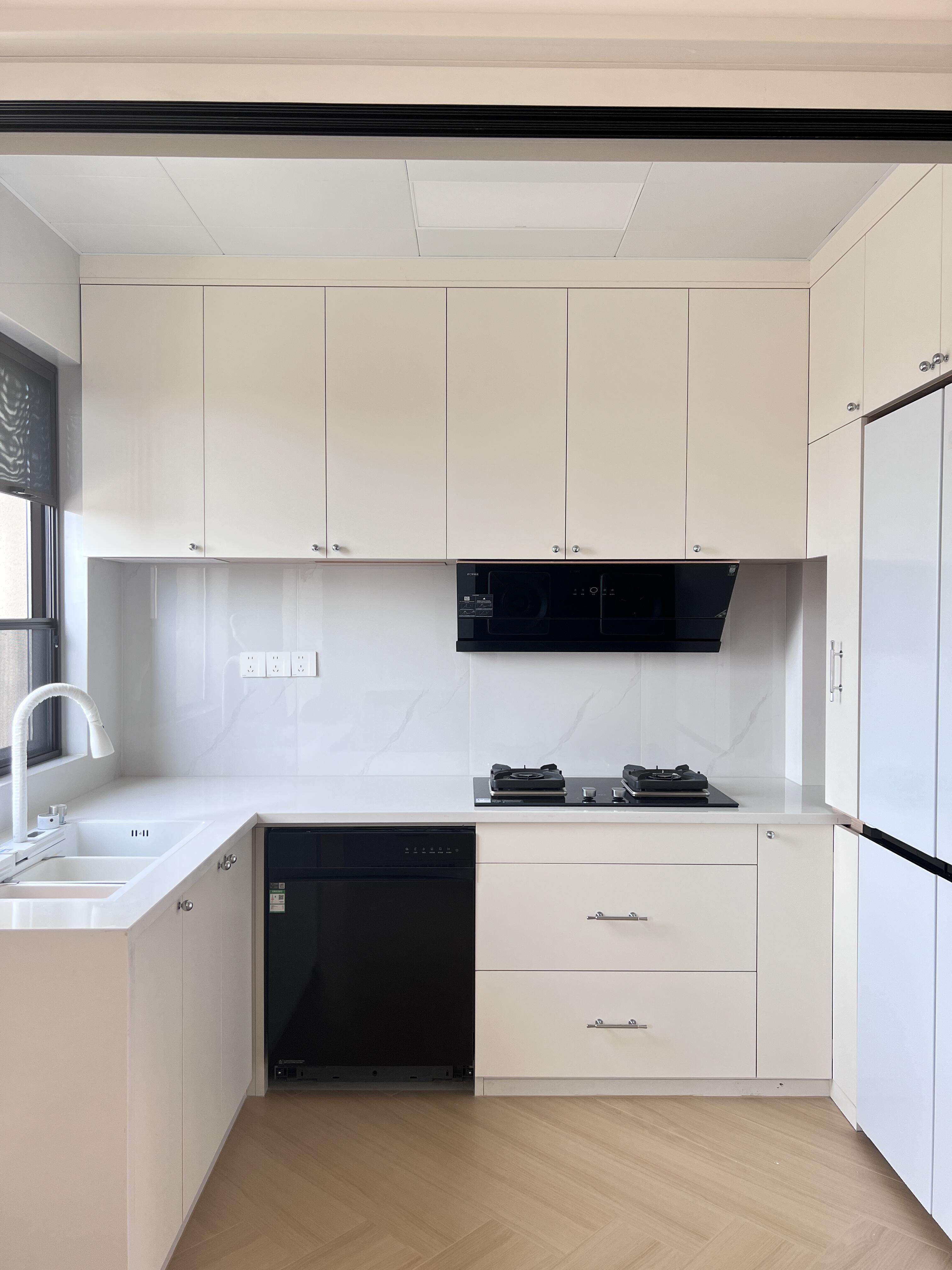- Garantía de Materiales de Alta Calidad : Utiliza paneles ecológicos de grado E0, encimeras de cuarzo importado o piedra sinterizada. No solo son resistentes al agua, al fuego y al desgaste, sino que también son fáciles de limpiar, asegurando la salud y seguridad de tu familia.