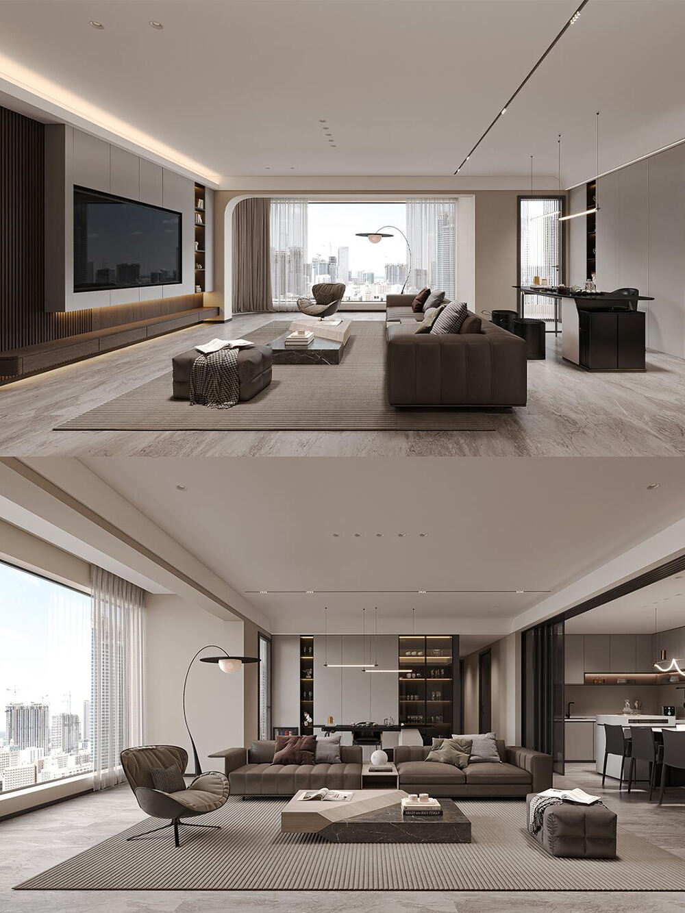 high   end whole house custom furniture with neutral tones leather  wood accents and seamless space integration for a luxury urban home-1