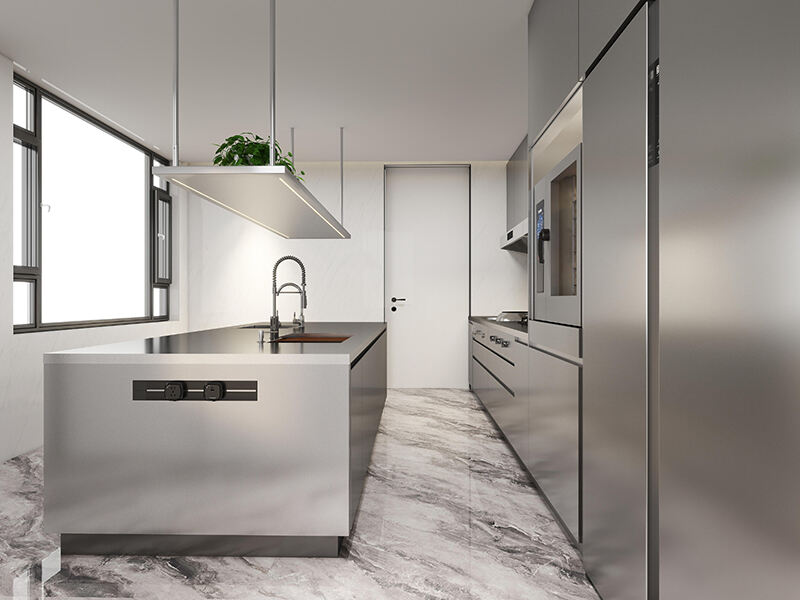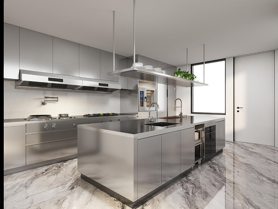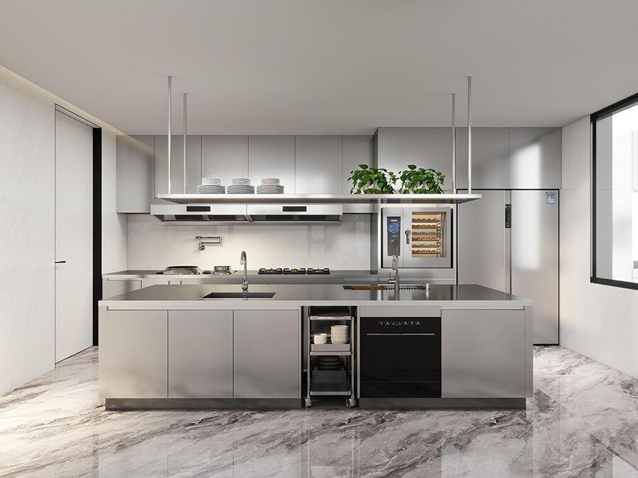 モダンなデザインを特徴とする贅沢なオールステンレス製キッチンキャビネットをご紹介します。高級キッチン空間に最適で、耐久性と高い機能性を備え、現代的なキッチン家電とシームレスに統合できます。洗練されたラインと磨き上げられたステンレス仕上げにより、十分な収納スペースを提供するだけでなく、グルメキッチンの美観を格段に引き上げます。ラグジュアリーさと実用性を求める方々にとって、キッチン設計における最適な選択肢です。