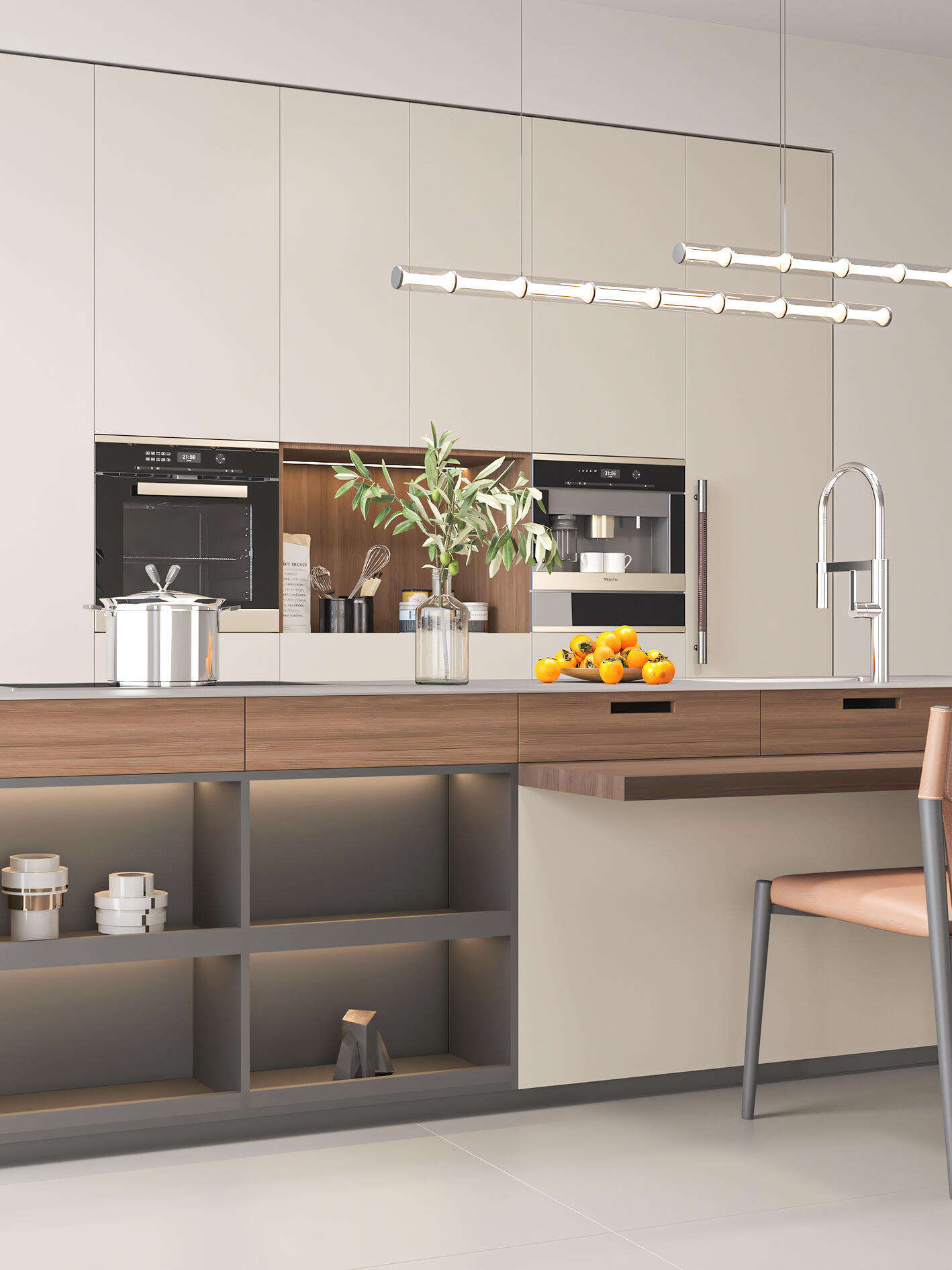 外観のカスタマイズ: 仕上げ(マット、木目調、光沢)やカラー(中性色調、ビビッドカラー)、ハードウェア(ミニマルな取っ手、ヴィンテージ風ノブ)からインテリアスタイルに合うものを選択できます。
