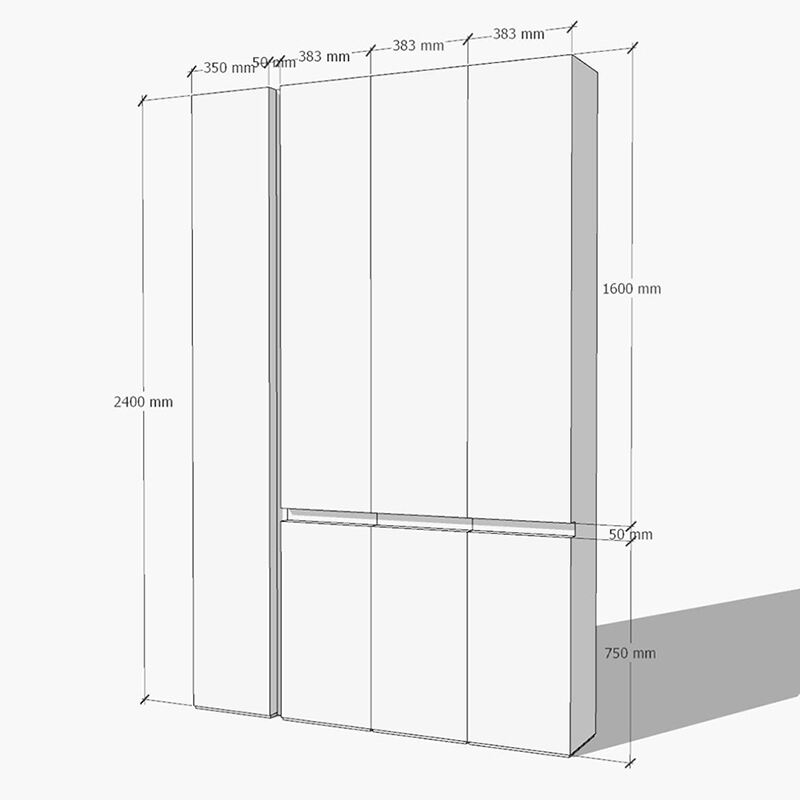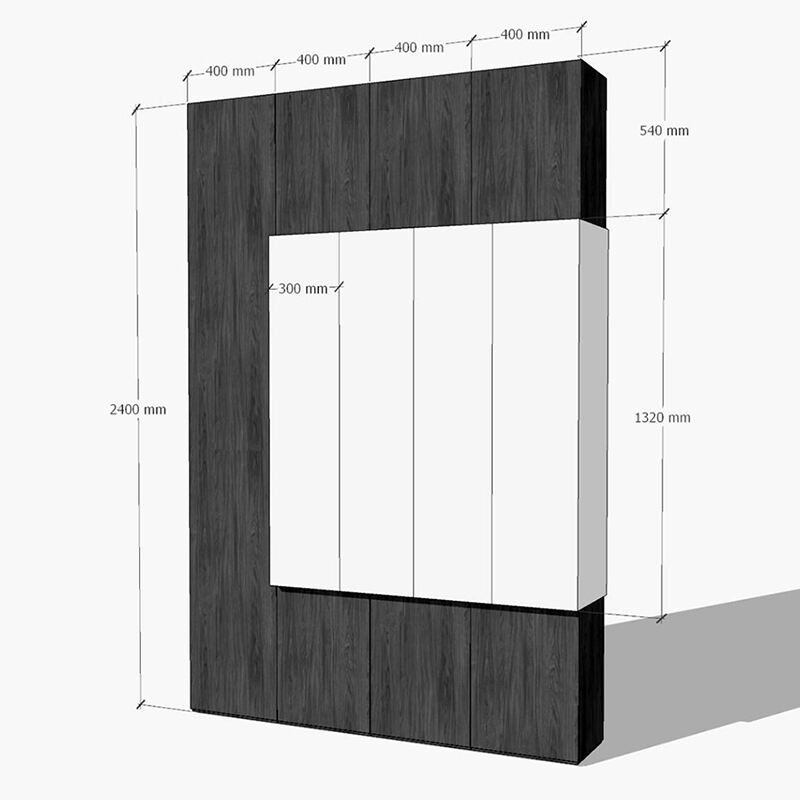 유사한 요소들이 체계적인 변화를 거치며 리듬감 있는 패턴을 만들어내며, 이는 치수, 소재 등에 반영될 수 있습니다. 캐비닛에 질서 잡힌 아름다움을 선사합니다.