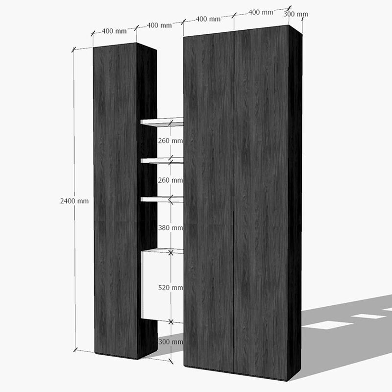 서로 다른 볼륨을 조합하여 더욱 풍부하고 다층적인 시각적 효과를 만들고, 캐비닛 디자인에 깊이와 흥미를 더합니다.