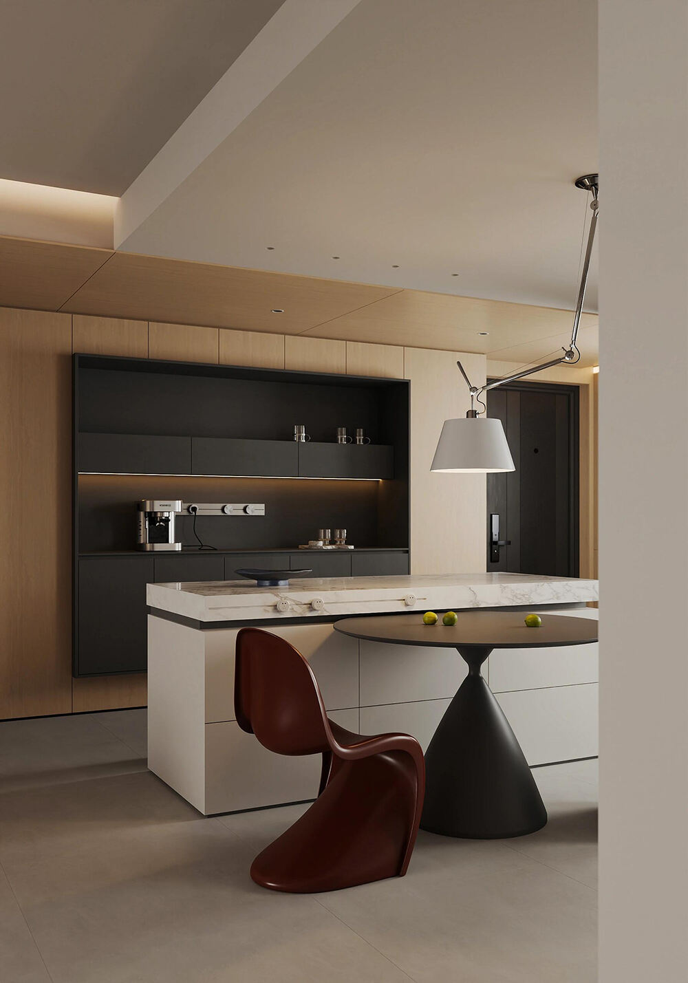 minimalist whole house custom furniture with neutral tones marble  wood accents and seamless space integration for a modern home-1