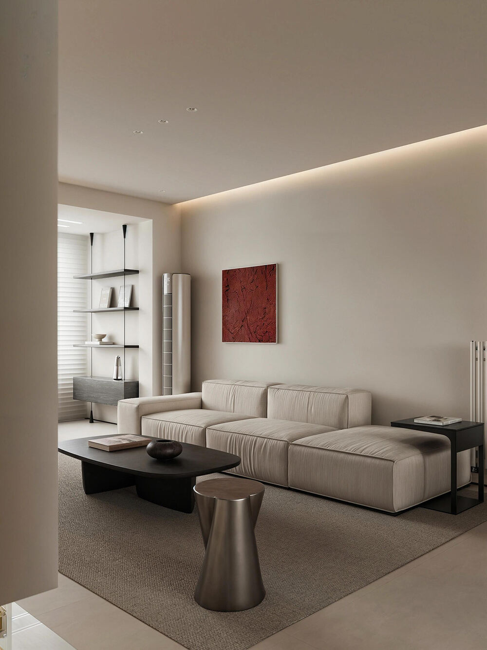 Minimalist Whole House Custom Furniture with Neutral Tones, Marble & Wood Accents, and Seamless Space Integration for a Modern Home