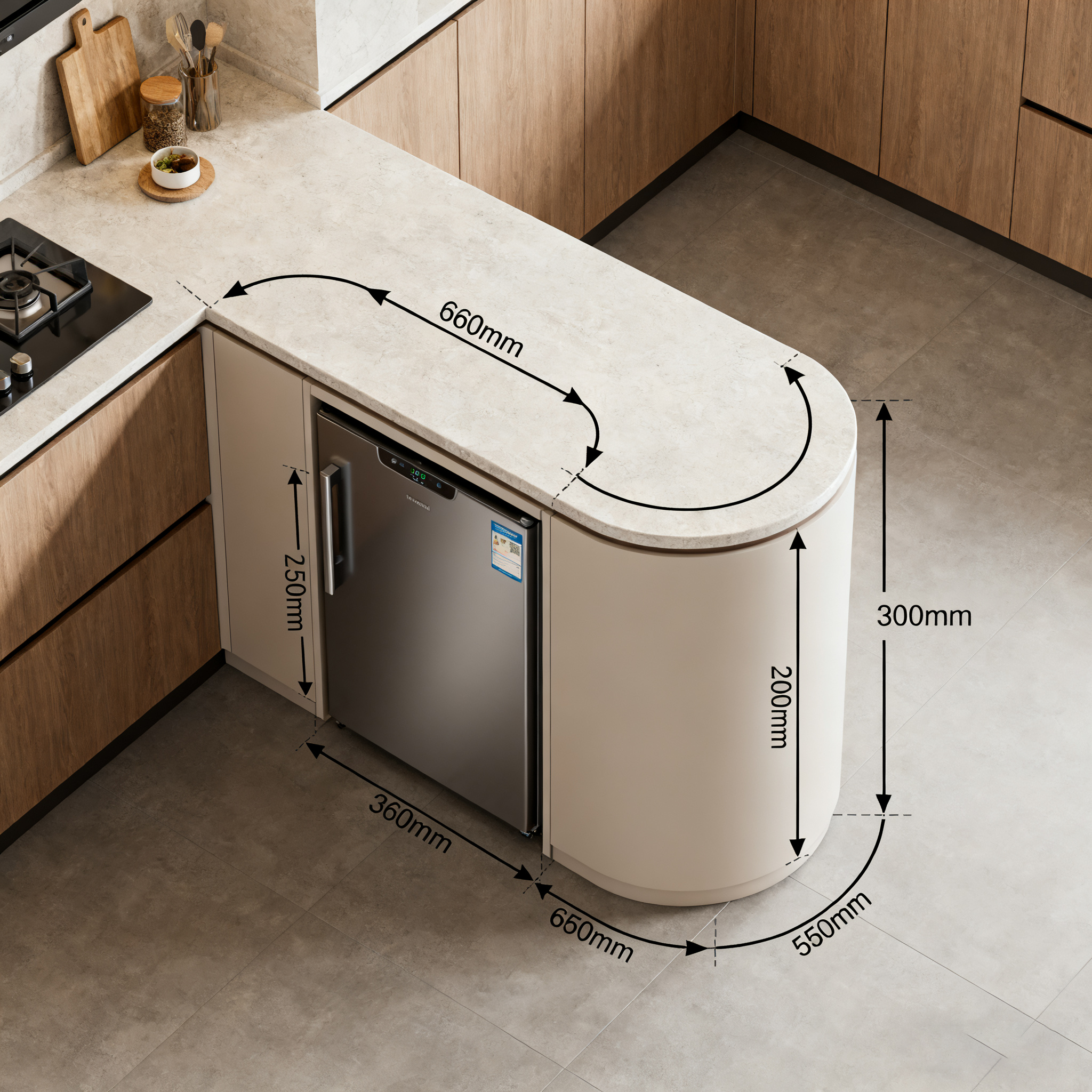 Хөргөгч нь кухнид байдаг том хэмжээний цахилгаан хэрэгсэл юм. Зөвхөн түүний хэмжээг ойлгосноор бид зайг илүү сайн эзэмших боломжтой. Ердийн нэг хаалттай хөргөгчийн хэмжээ ойролцоогоор 560 мм (өргөн) * 550 мм (гүн) * 1750 мм (өндөр) байдаг; хоёр хаалттай, олон хаалттай хөргөгчид нь 700-1000 мм өргөн, 650-700 мм гүн, 1740-1800 мм өндөртэй байдаг.