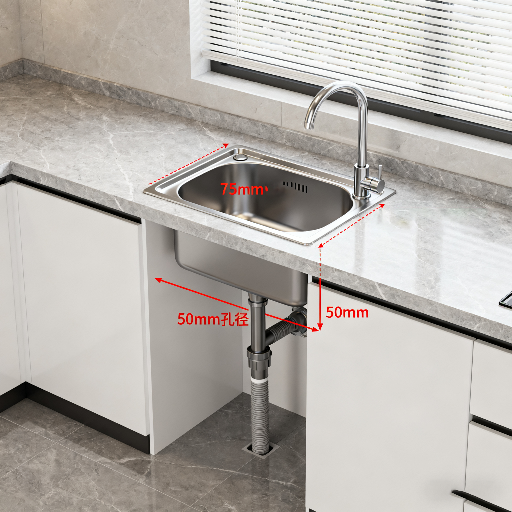 Кухны хувингийн хоолойд саатал үүсэхээс сэргийлэхийн тулд угаагуурыг хувингийн хоолойн ойролцоо байрлуулах шаардлагатай. Ихэнх кухны хувингийн хоолойн диаметр нь 75 мм байдаг ба зарим куханд 50 мм диаметртэй хувингийн хоолой ашигладаг. 50 мм диаметртэй хувингийн хоолой тохиолдвол кухны угаагуурын байршилыг шилжүүлэхгүй байхыг зөвлөж байна, үгүй бол хоолны үлдэгдэл хоолойд саатаж магадгүй.