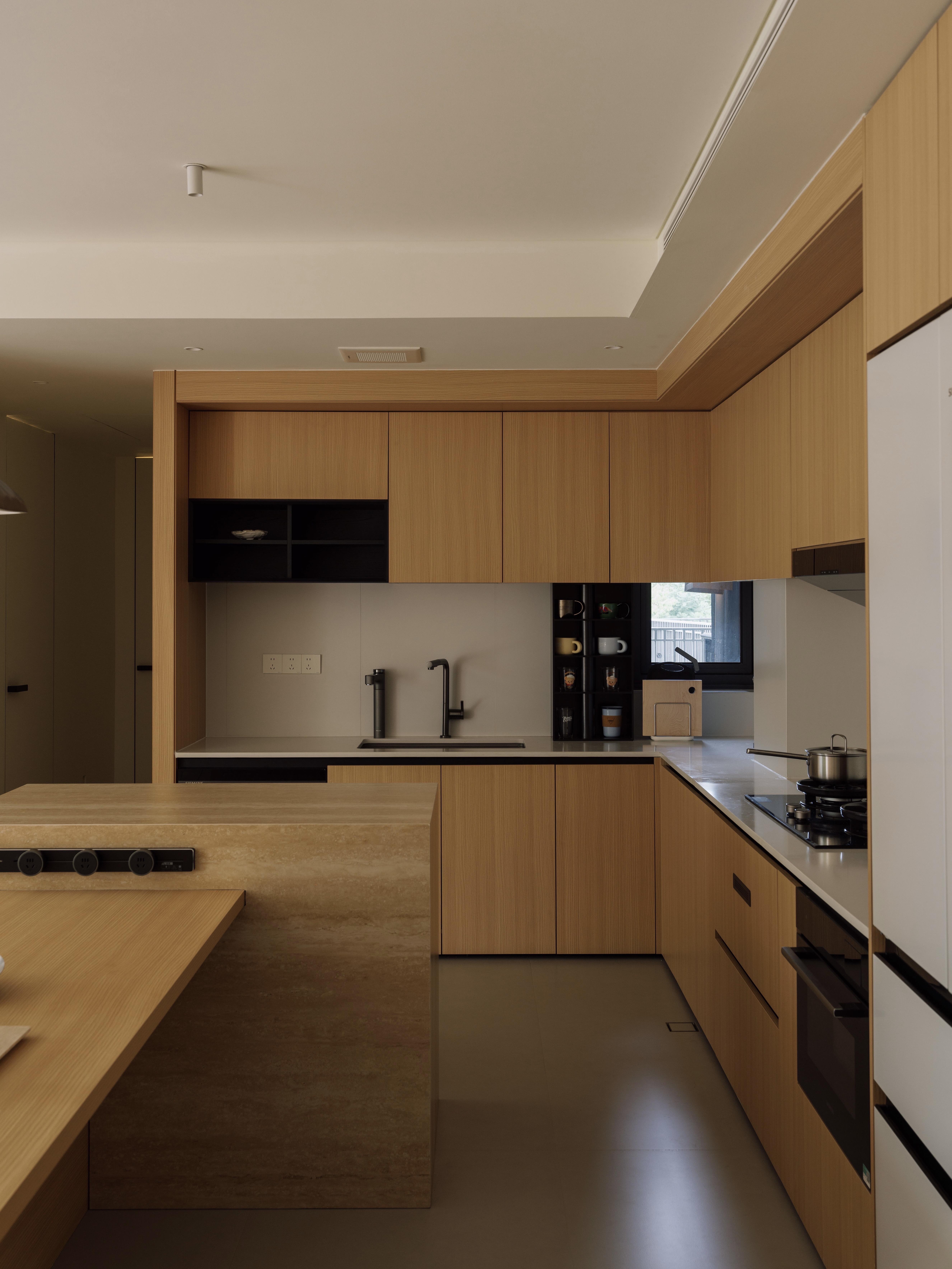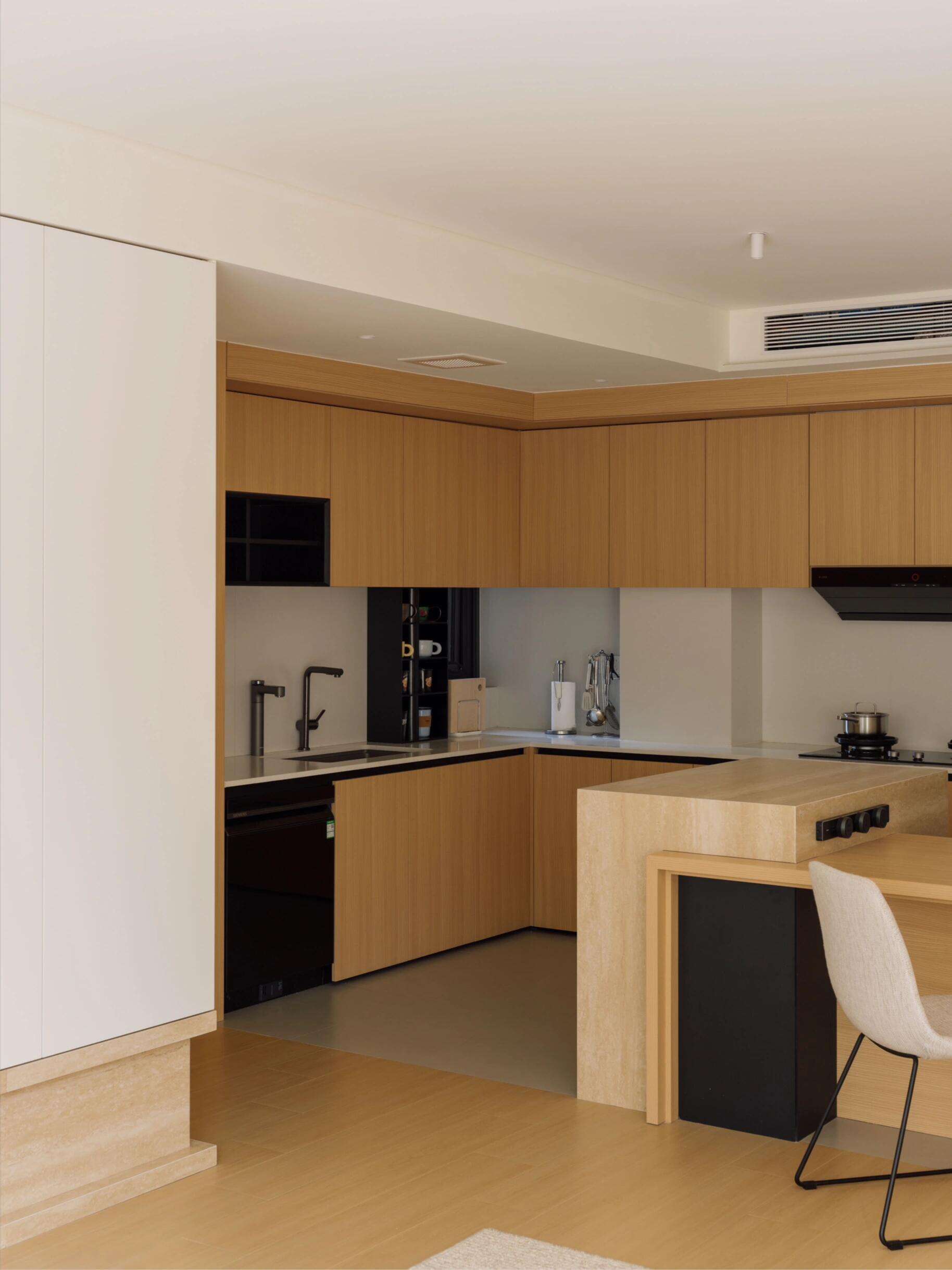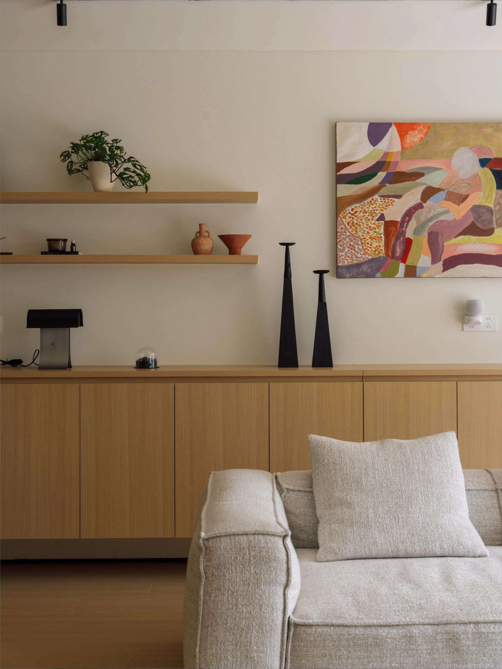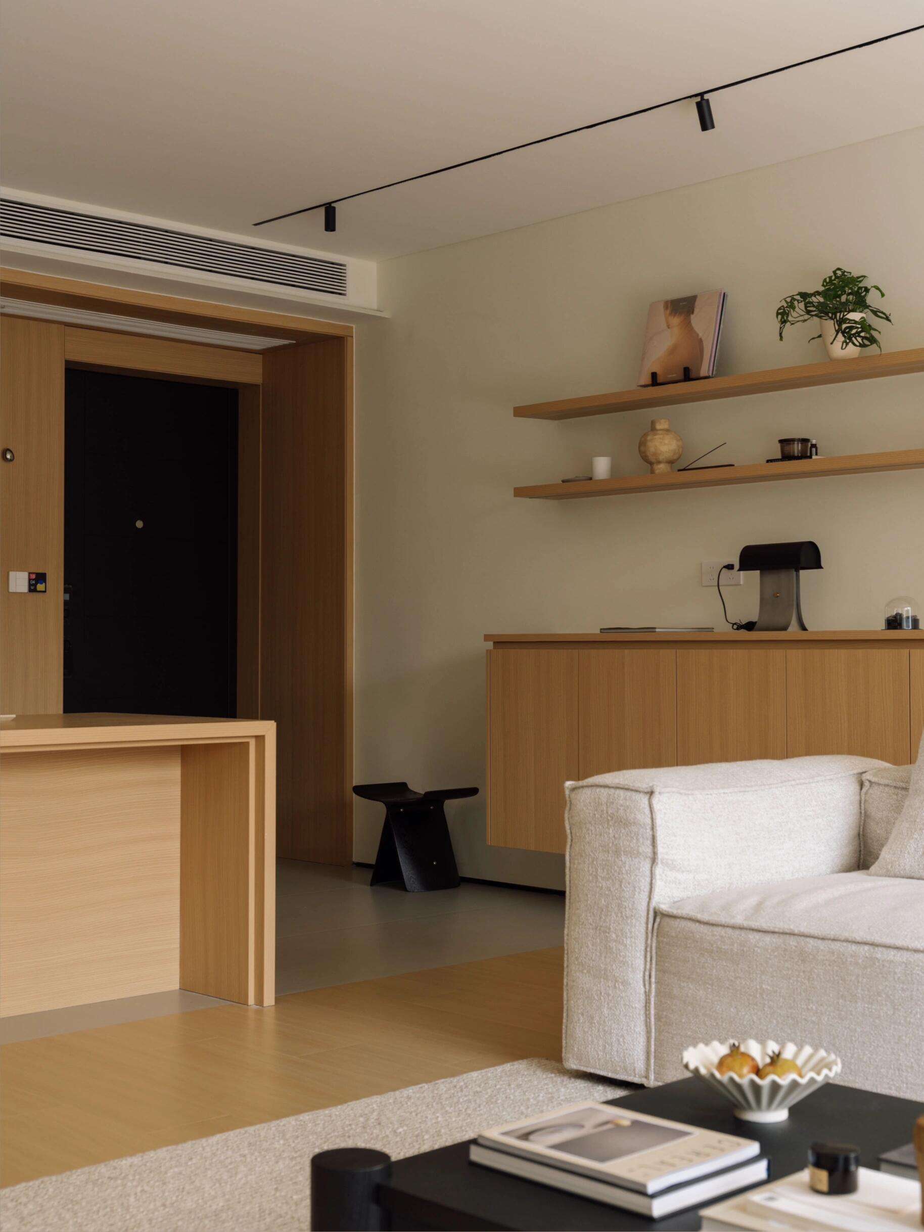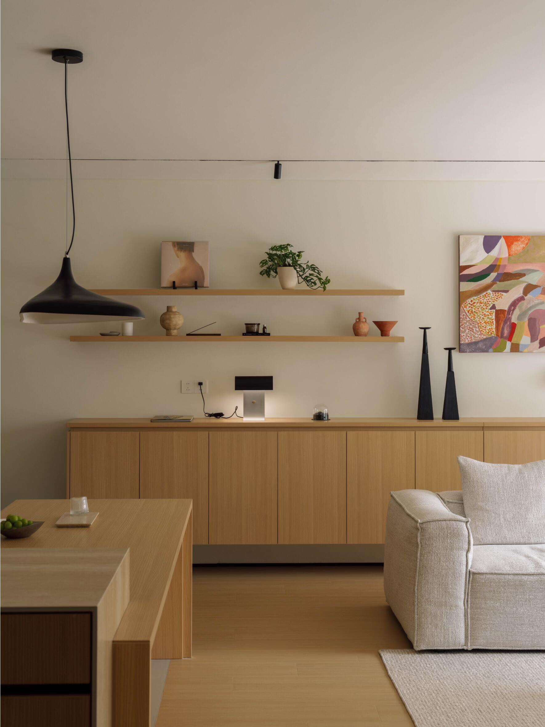 modern home interior with light wood tones neutral color palette and minimalist shapes for cozy living and kitchen spaces-10