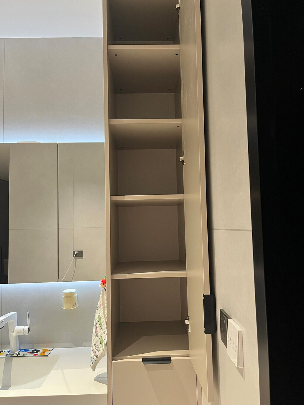 Upgrade your bathroom with this modern light beige bathroom vanity, featuring multi - layered storage, functional organizers, and an LED - lit mirror. This practical, organized, and stylish solution creates a tidy bathroom space tailored to your needs.