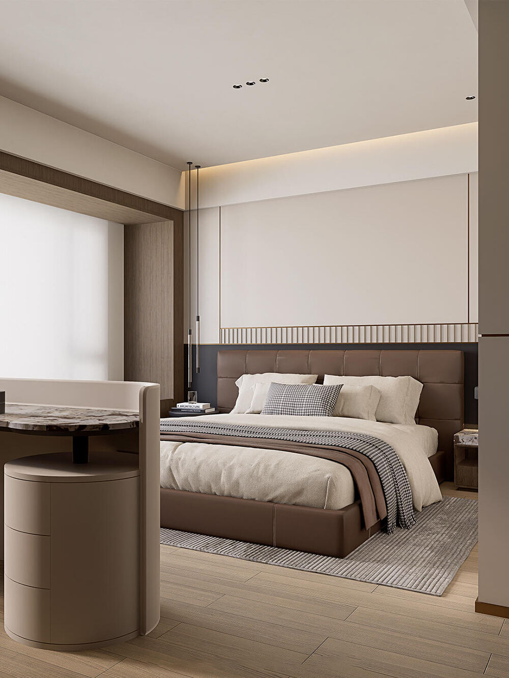With 13 years of export experience, our in-house designers and dedicated craftsmen shape every wardrobe. We blend modern minimalist aesthetics with functional design, using light-tone panels, dark accents, and glass inserts to reduce visual bulk. Our focus: creating airy, clutter-free bedrooms tailored to urban living needs.