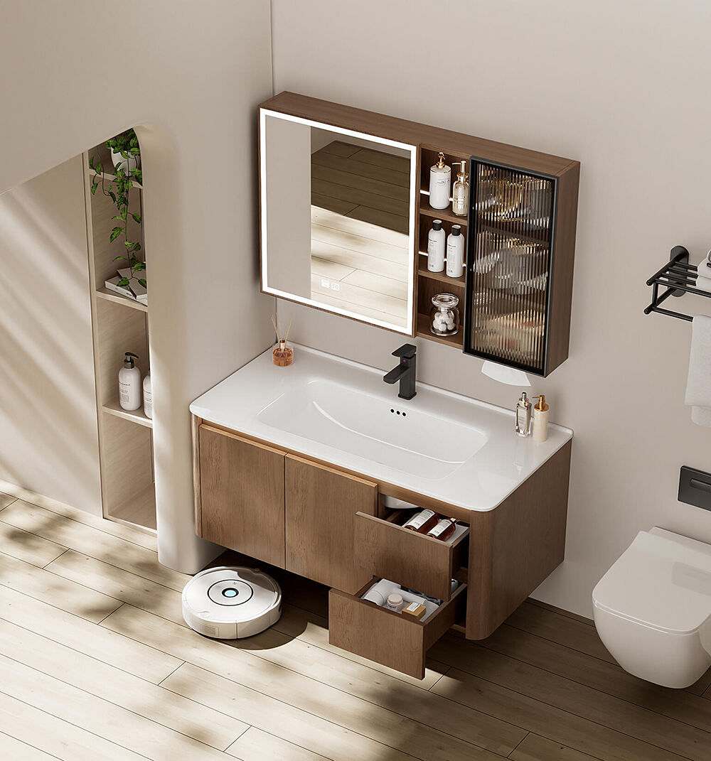 Modern LED - Lit Bathroom Vanity with Wooden Finish supplier