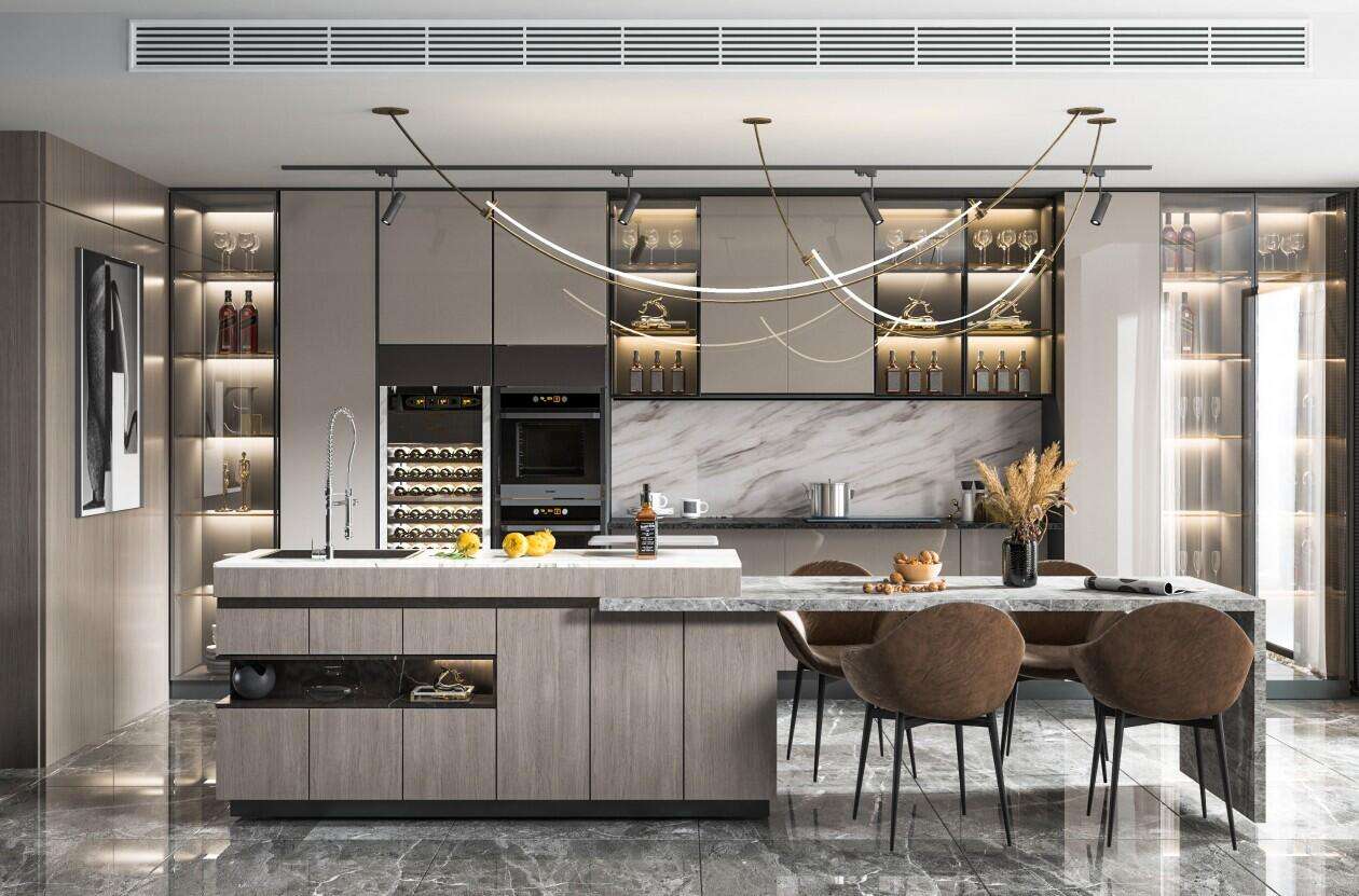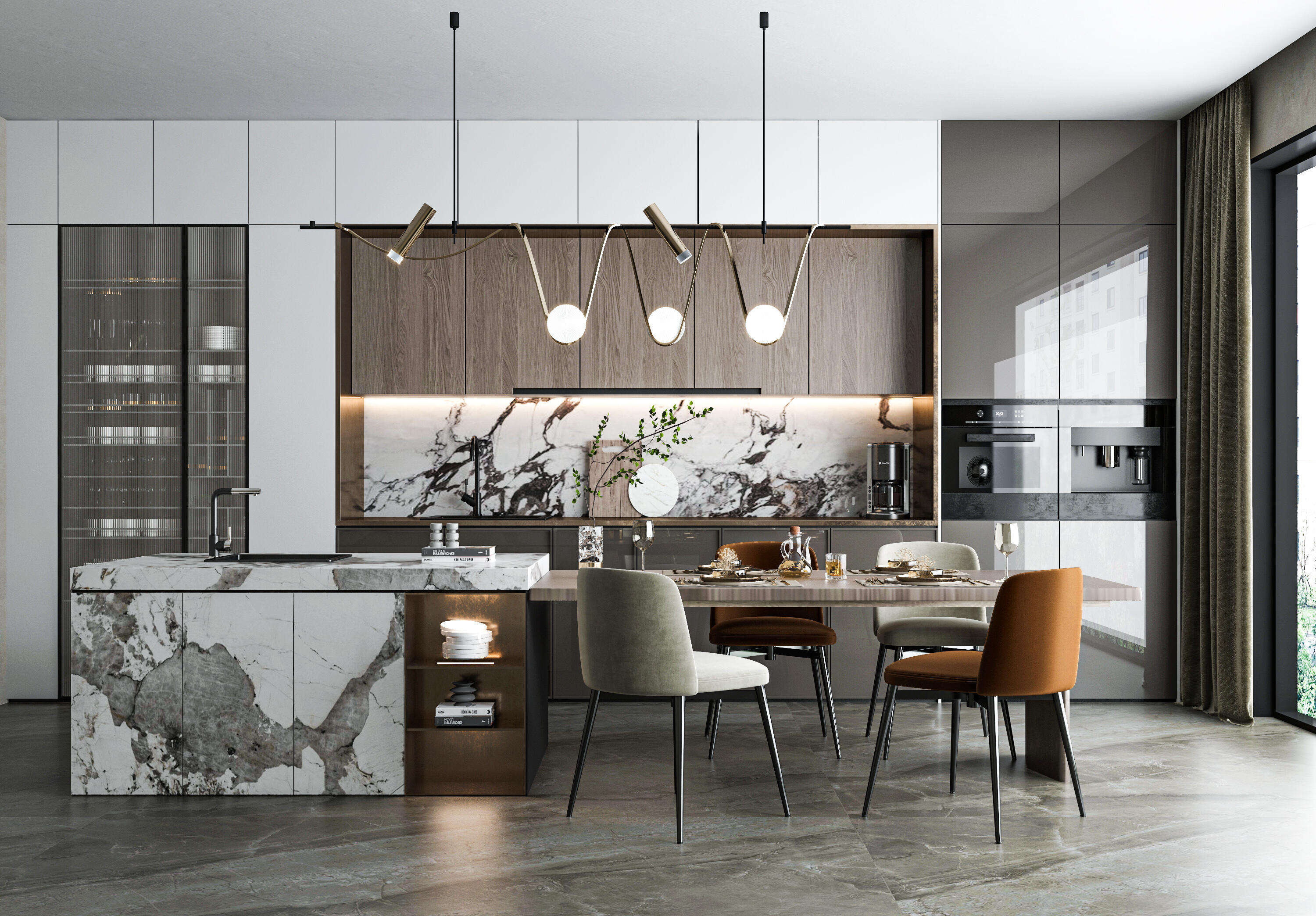 Современные кухонные гарнитуры с разнообразными цветовыми вариантами, высококачественными материалами и встроенным хранением для стильных домашних кухонь