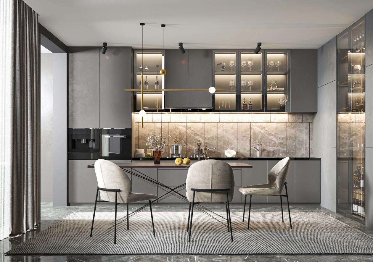Modern Minimalist Kitchen Cabinet Set with Integrated Storage details
