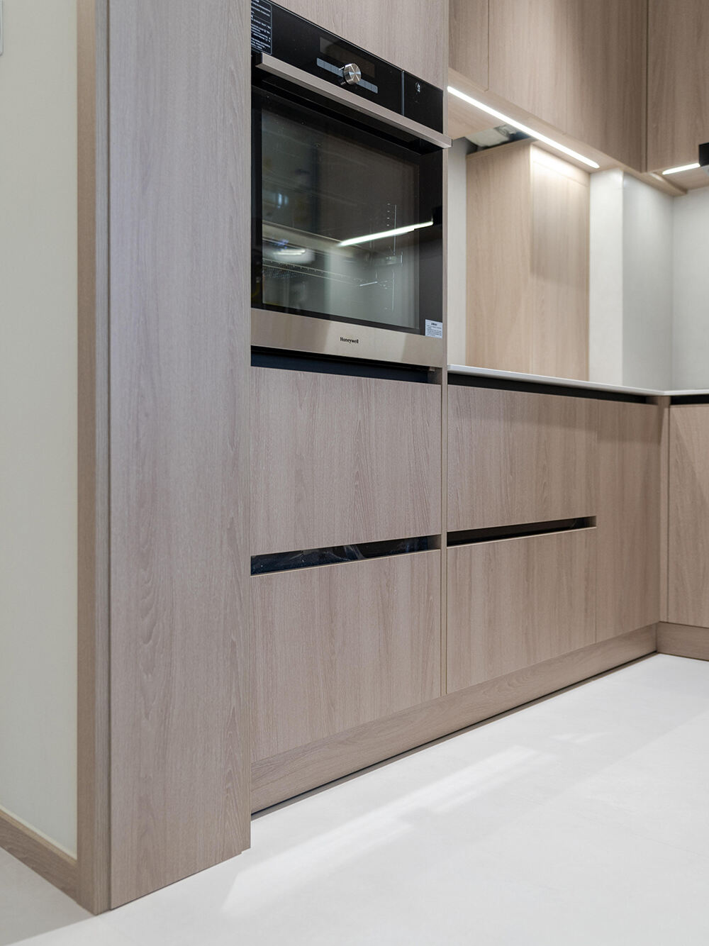 Функциональная настройка: Добавьте такие функции, как выдвижные держатели для специй, светодиодное освещение под шкафами или скрытые отсеки для хранения, адаптируя удобство использования к Вашим ежедневным привычкам.