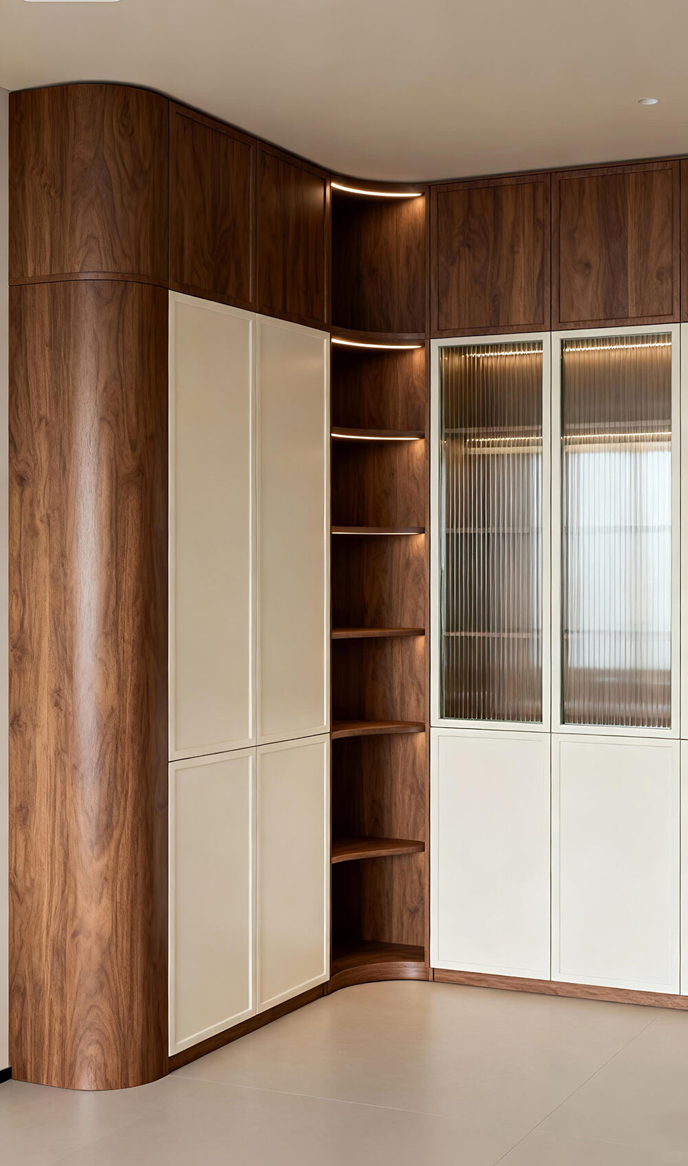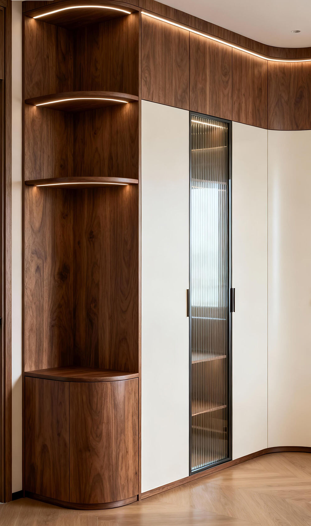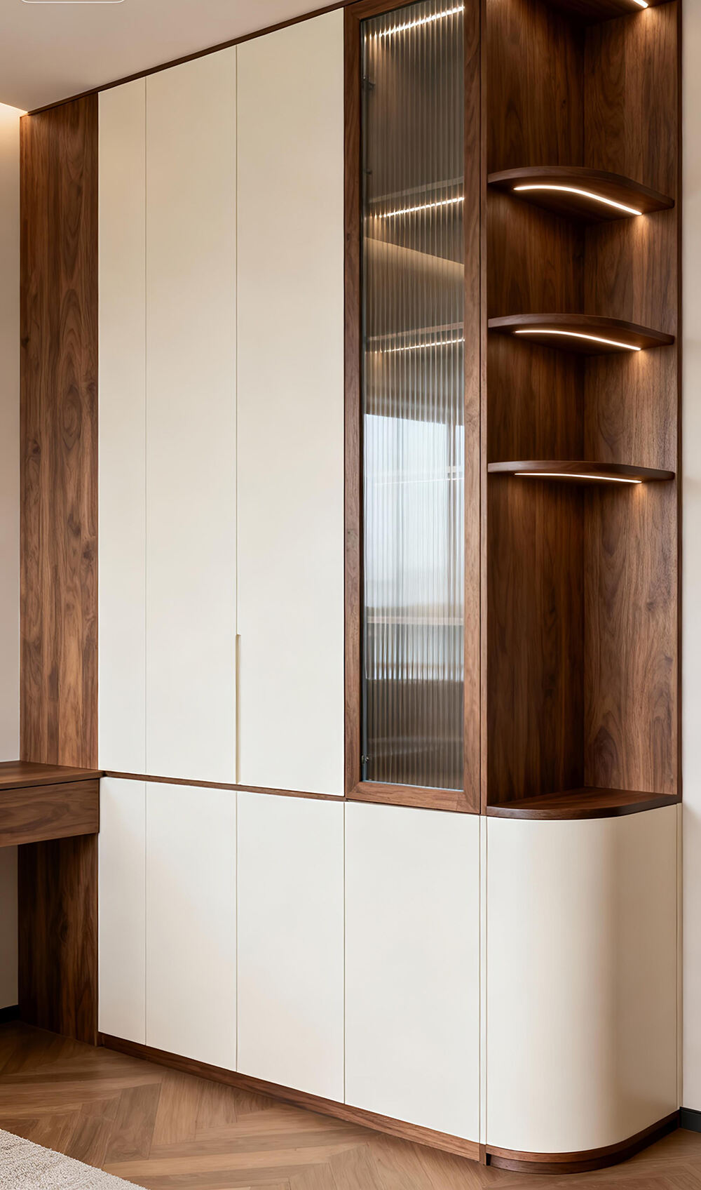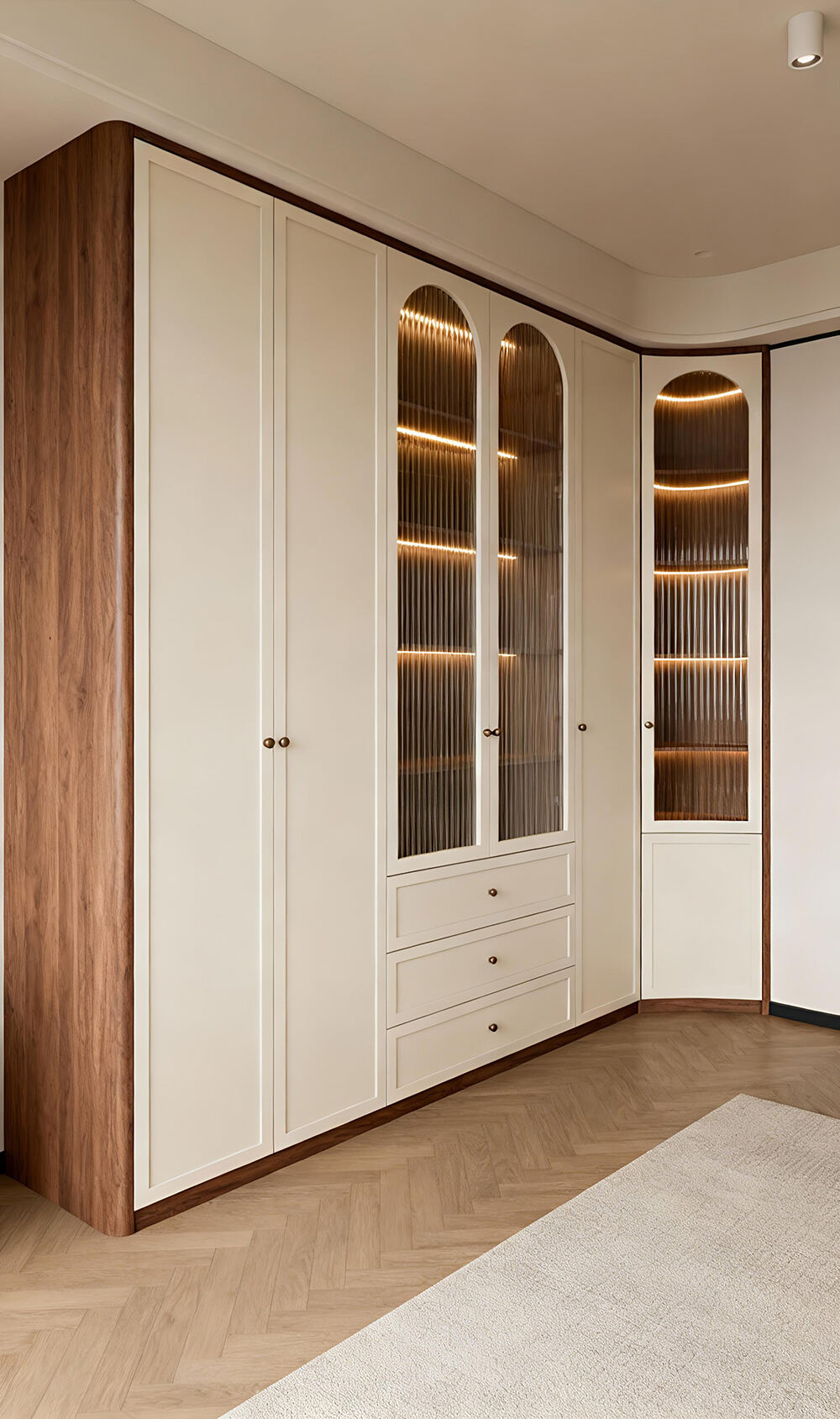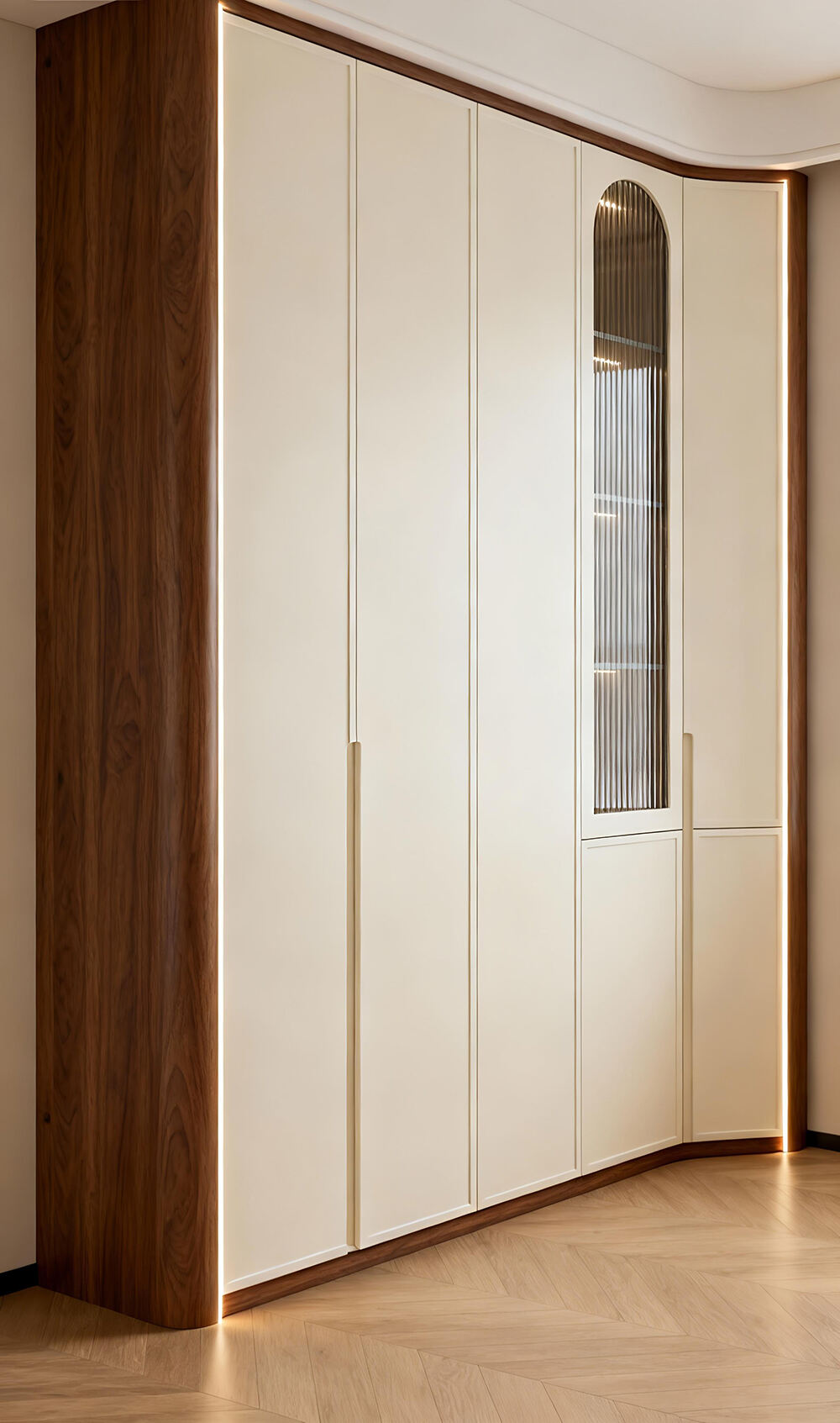 May kakaibang hugis na nagdaragdag ng artisticong epekto, lumalaya sa katigasan ng tradisyonal na mga aparador at maayos na nababagay sa estetika ng minimalistang kuwarto ng higaan.