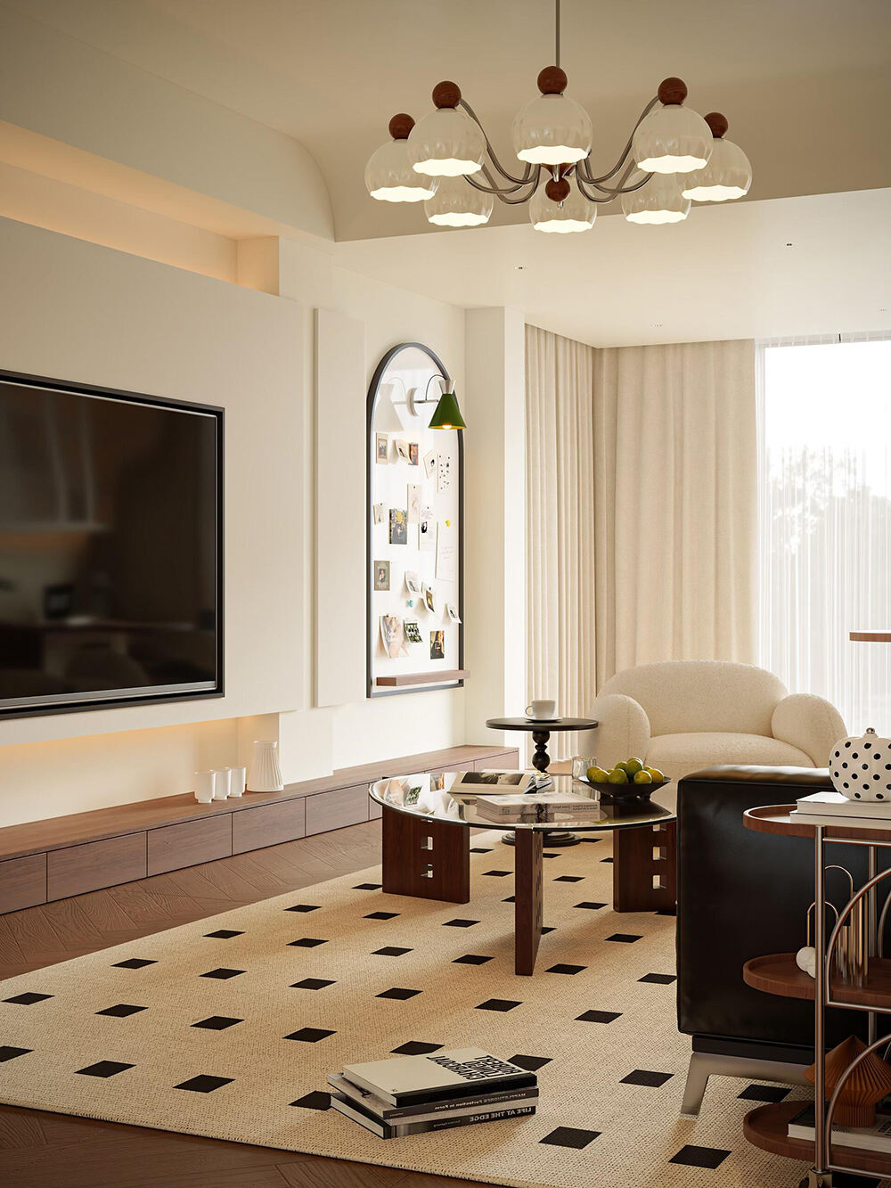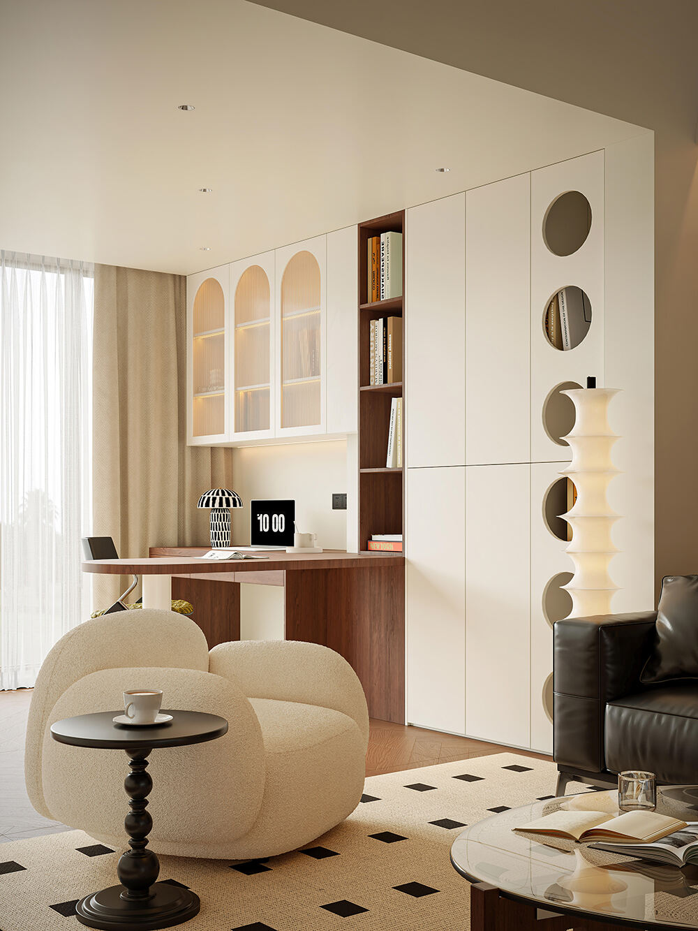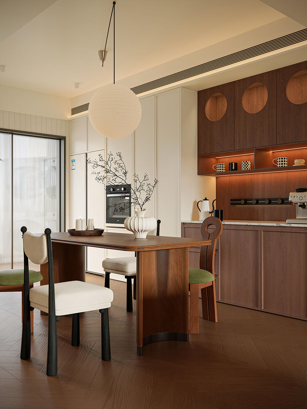 vintage   modern whole house custom furniture with warm wood tones playful shapes and seamless integration for a cozy home space-10